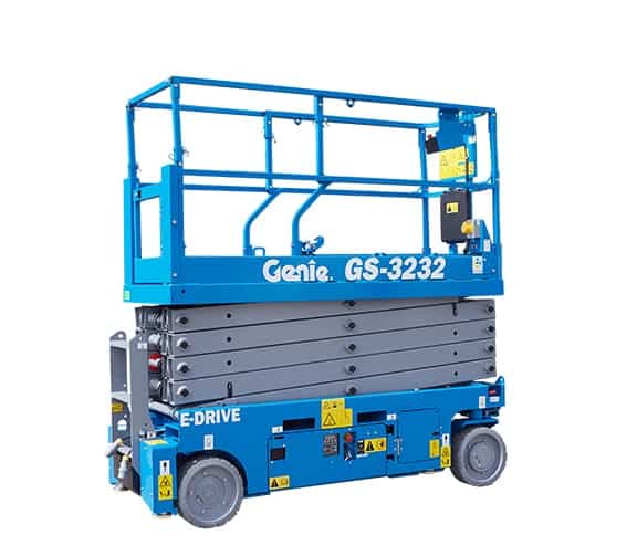 The Genie® GS™-3232 slab scissor lift is an electric model ideal for operation in emission and sound-sensitive indoor and outdoor jobsites where space is limited. The standard, state-of-the-art Genie AC electric E-Drive system offers unmatched efficiency and runtime on installation, maintenance and construction jobs, especially when a significant amount of driving is required.